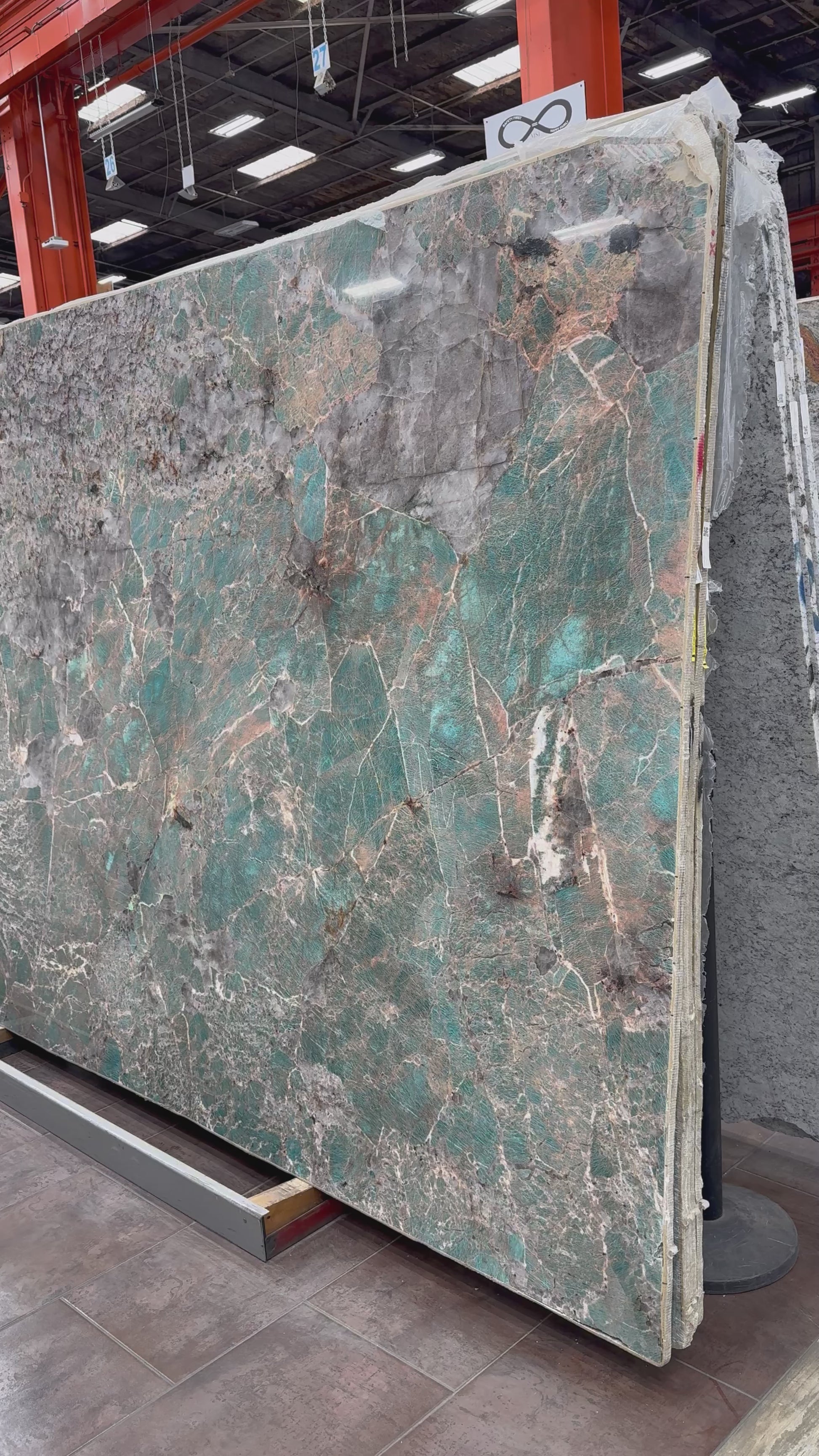 This slab is ideal for those looking to infuse their interiors with a bold, elegant, and luxurious touch. Its vibrant blue-green hues and polished finish make it a standout choice for any design project..
