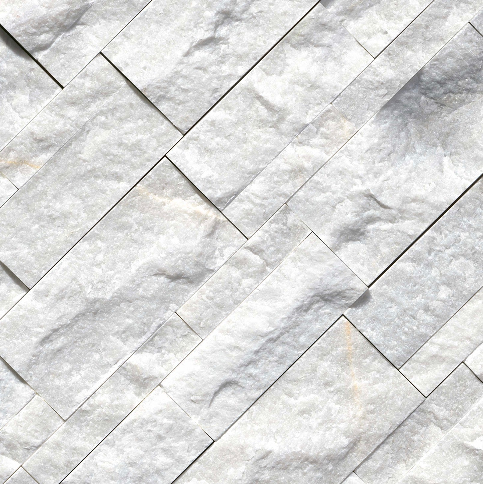 Each panel features a split-face finish, showcasing the natural, rugged texture of the quartzite. This creates a dynamic play of light and shadow, highlighting the stone’s crystalline structure and sparkling mica inclusions.