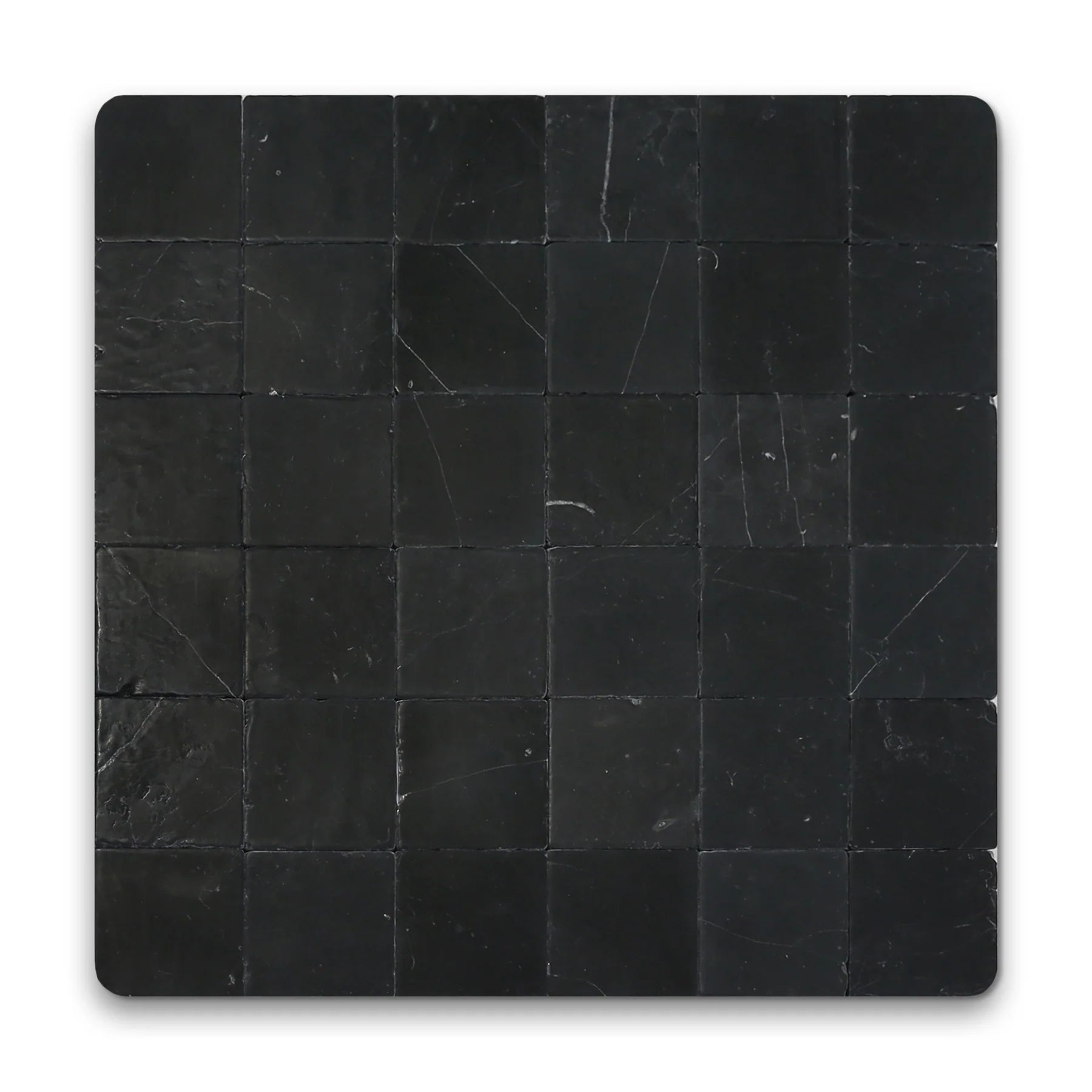 While Nero Marquina is often seen in high-polish formats, this Tumbled Finish provides an "Old World" charm. The edges are softly rounded and the surface is slightly distressed, giving the stone a weathered, matte appearance that feels timeless and grounded. The classic 4x4 square format is making a major comeback in "Modern Mediterranean" and "Spanish Colonial" designs, offering a tactile, slip-resistant surface that adds instant character to any room.