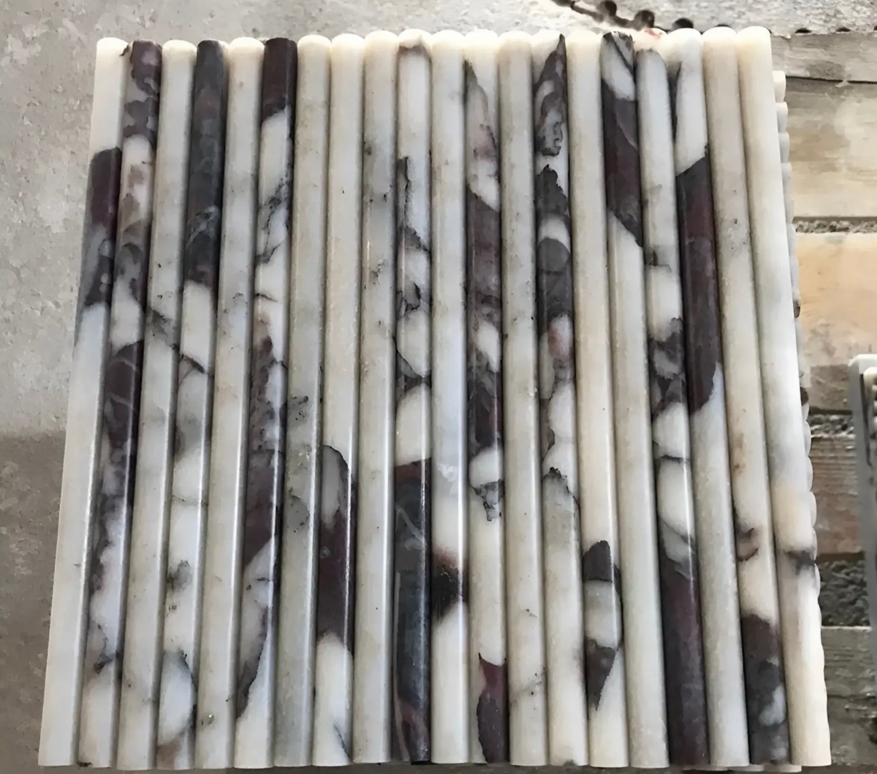 The 1/2" x 12" profile is a slender, cylindrical "bead" designed to provide a sophisticated transition between different tile types or to cap off a vertical wainscoting. The high-polished finish acts as a magnifying lens for the stone’s intense mineralogy, making the violet tones appear rich and liquid-like. Whether used to frame a Calacatta Violet penny round or to add a "pop" of luxury to a simple white subway tile, this pencil liner provides a bespoke, professional finish.