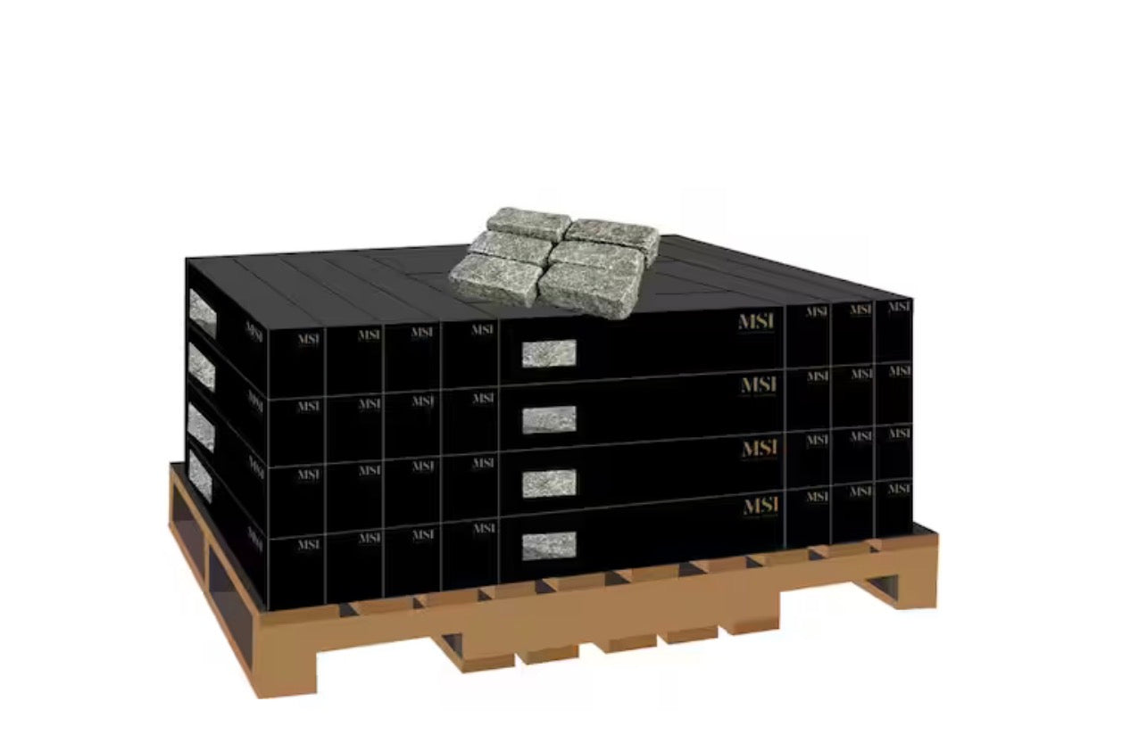 The surface features a Natural Cleft/Tumbled finish, providing a rugged, high-traction texture that remains safe even in heavy rain or frost. Because these blocks are 2.5 inches thick, they possess the compressive strength required for heavy vehicular traffic, making them the ultimate "forever" solution for luxury driveways, aprons, and curbing. Whether used as a decorative border for a gravel path or a full-scale "fan-pattern" driveway, the Belgian Block represents the gold standard in exterior masonry.