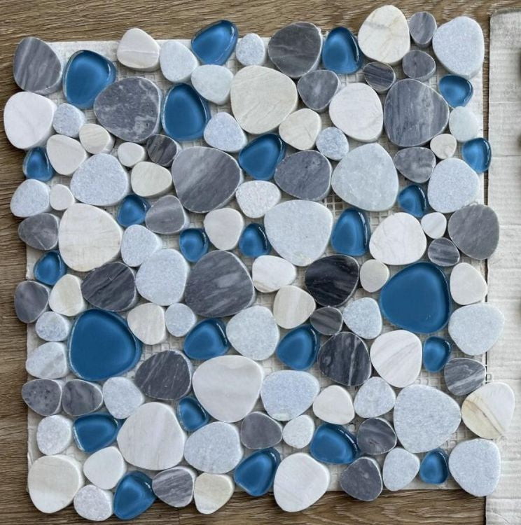 | Tile Name | Peach Royal Blue Pebble Mosaic Tile |
