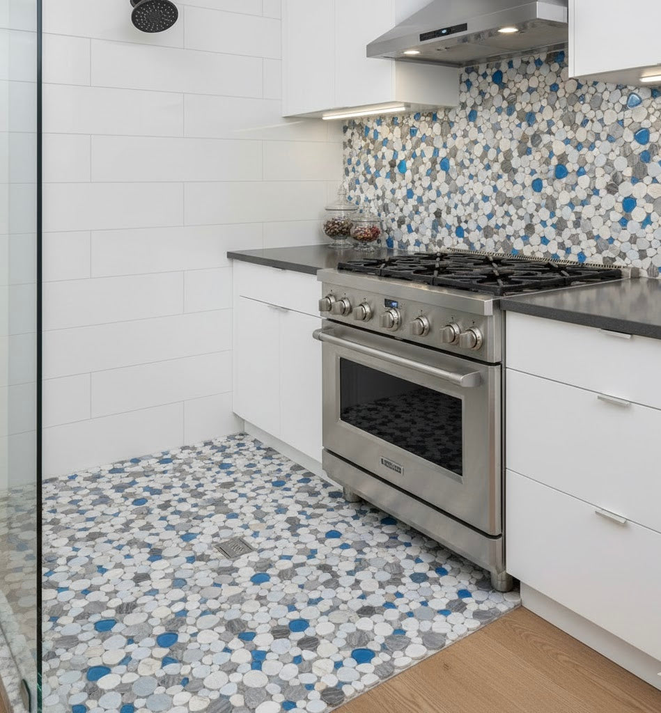 Slip-Resistant Surface: The natural contours of the pebbles offer inherent slip resistance, making this an excellent choice for wet areas like shower pans.